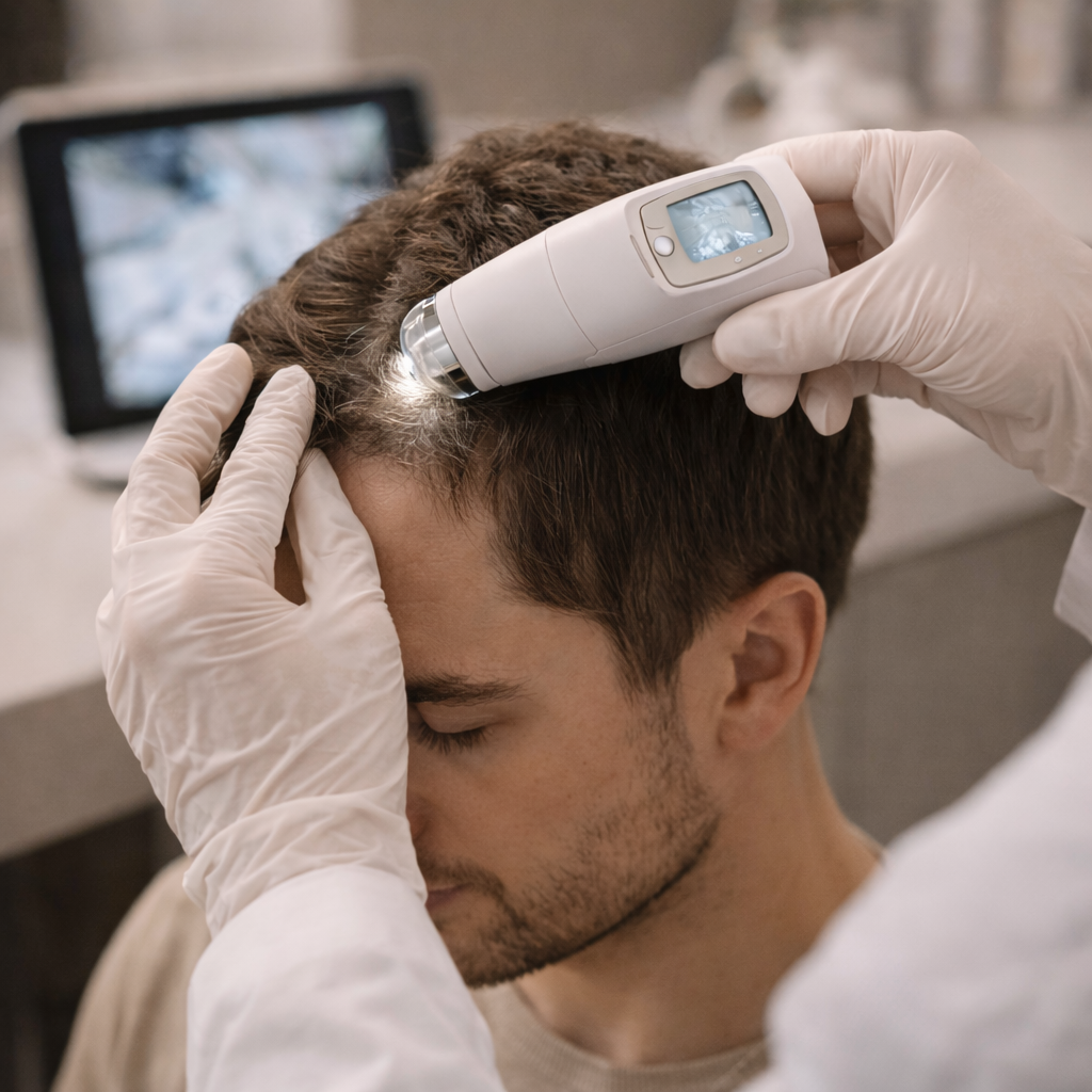 Diagnóstico preciso para problemas de caída y cuero cabelludo.